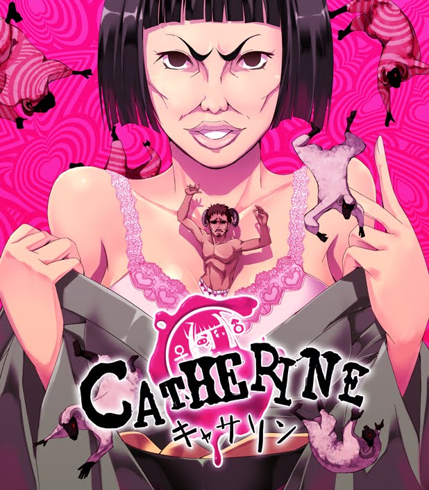 The very first would be from the anime Gintama where Hasegawa Taizou is being gobbled by Catherine's blossom... Perhaps a bit worse than the Catherine in the game... The cover and design totally resembles the one above except the looks are more hideous...